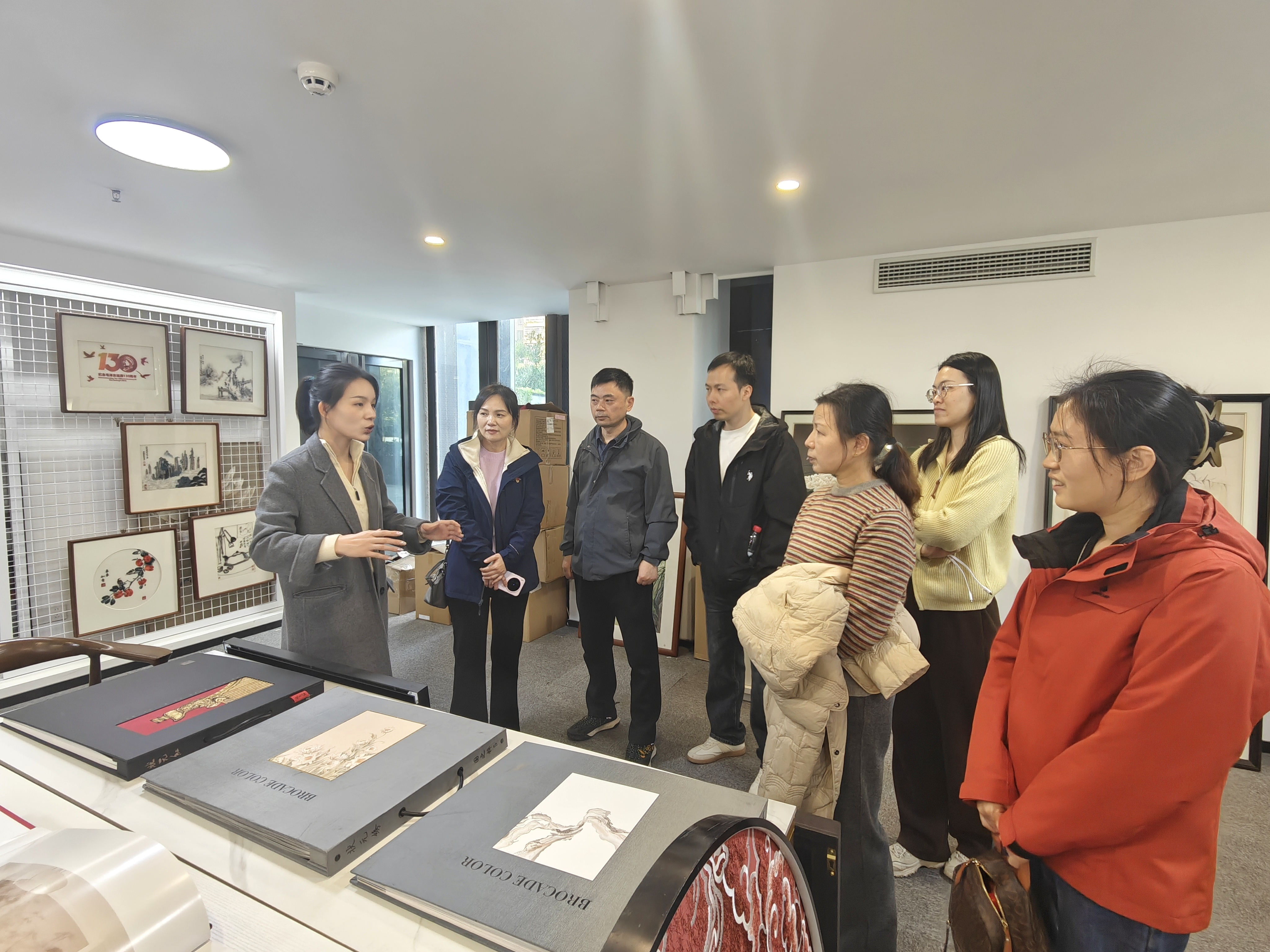 最后一站,党员们走进湖南师范大学湘绣创新研发中心。在这里,千年湘绣技艺与现代科技碰撞出创新火花。大家不仅了解了湘绣的历史脉络与精湛技艺,更重点关注数字纹样设计、新型材料应用、沉浸式展示等前沿探索。一根绣针、一款软件,传统非遗在科技赋能下正焕发出面向未来的新生机,让党员们对“推动中华优秀传统文化创造性转化、创新性发展”有了更具体的认知。