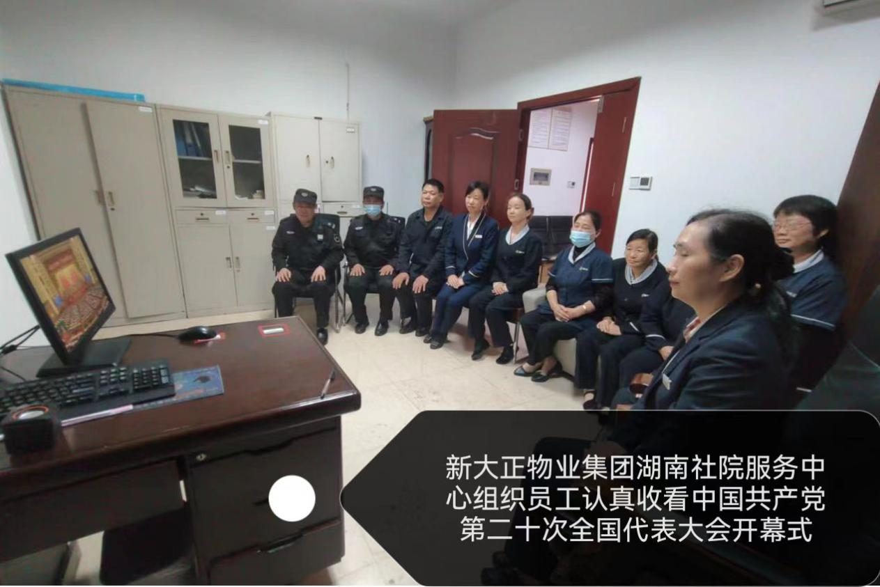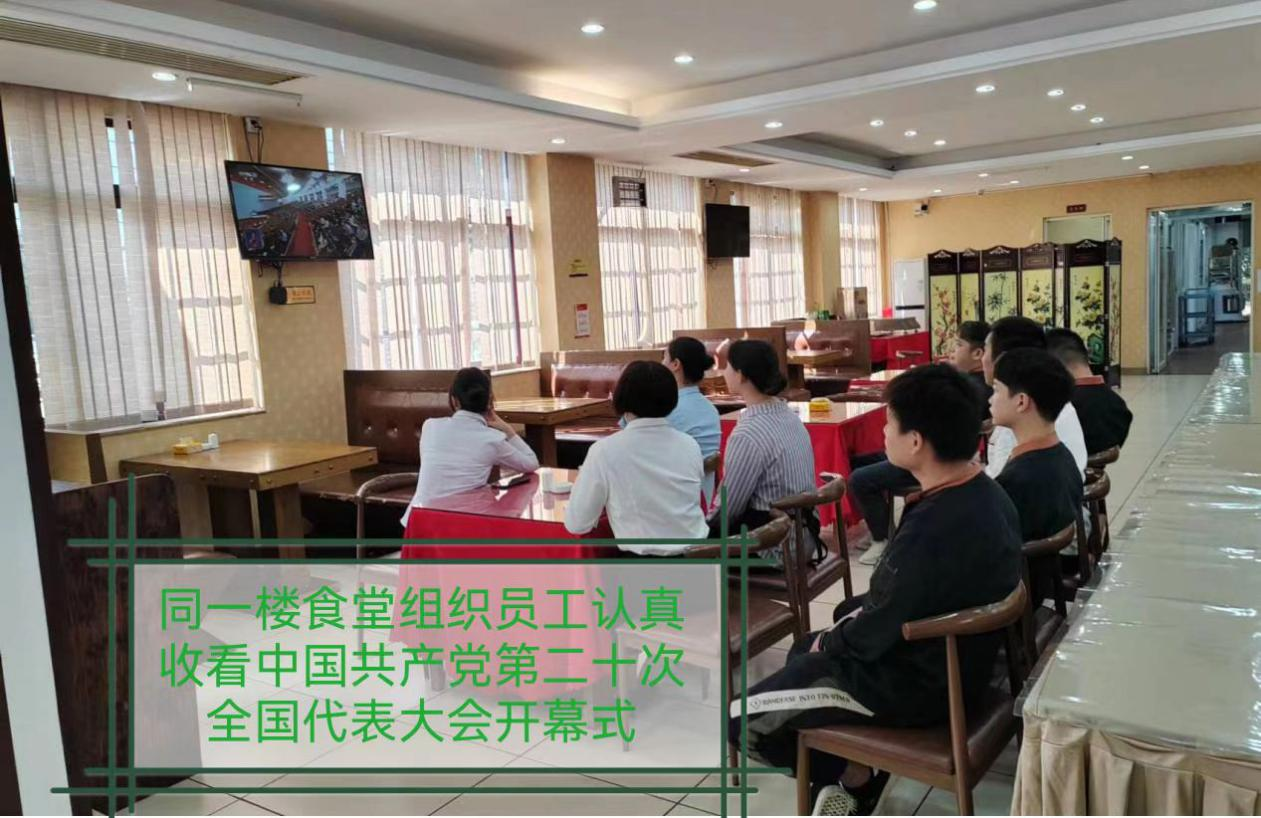 10月16日上午,我院驻院协作单位新大正物业公司、同一楼餐厅分别组织员工集中收看中国共产党第二十次全国代表大会开幕会,认真聆听习近平总书记所作报告。